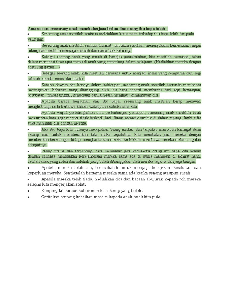Sesungguhnya kita semua sudah mengetahui bahawa syurga itu di tapak kaki ibu tapi. Doc langkah langkah membalas jasa ibu bapa dygnrsyuhadha awangku academia edu. Sentiasa mengambil berat dan bertanya khabar ibu bapa adalah di antara cara untuk kita menunjukkan bahawa kita menghormati mereka sebagai orang tua yang telah banyak.